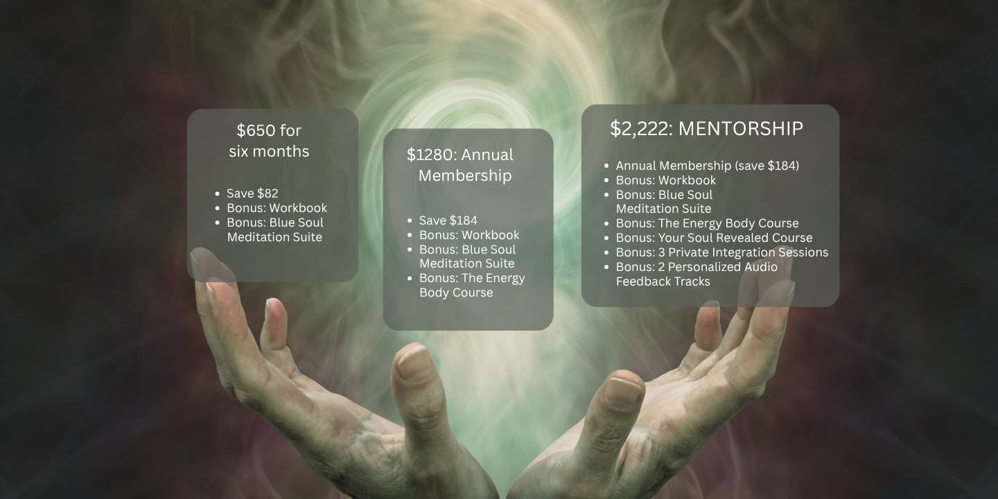 We’ve been consistently told that the cost of the energy exchange for our monthly memberships is less than half of what others charge. Given that our new Blue Soul Alchemyprogram is much more in-depth than our previous offerings, combining 15+ years of knowledge and experience, we have created a tiered structure to make it accessible to as many people as possible while also honoring our time and energy commitment each month.