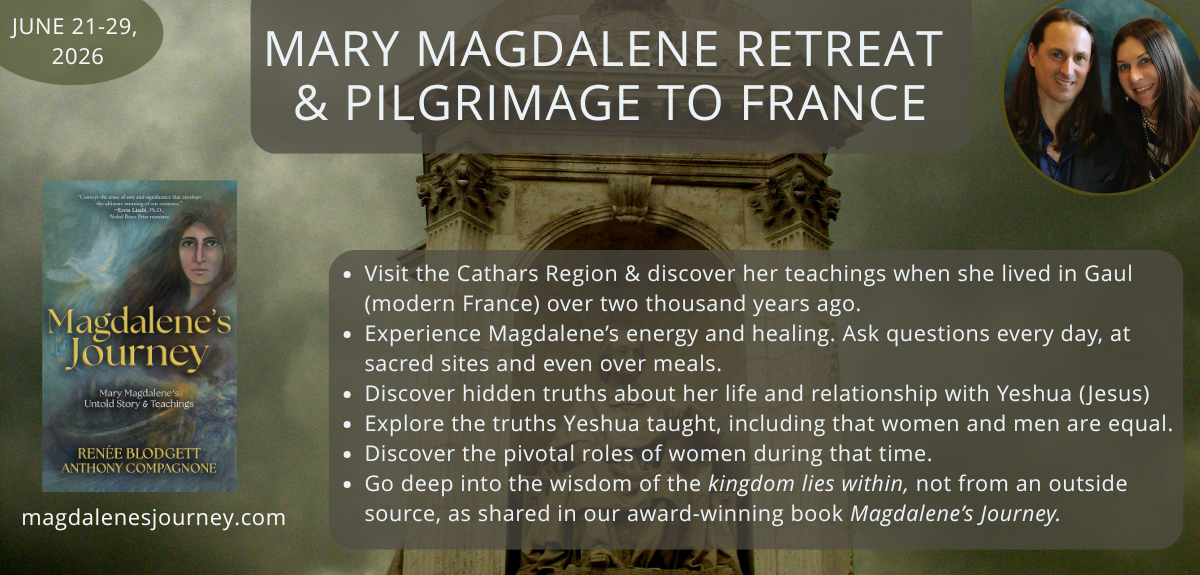 June 21-29, 2026: Join us in the Cathars Region of France, which has an mind-bending and turbulent history of heresy and crusades. The Cathar Country (Pays Cathare in French) is much more than a Cathar Castles route since it includes medieval castles, villages, and Romanesque abbeys related to the Cathars, France’s main heresy in medieval times. These Cathar sites in France bear witness to the conflict between those who followed Catharism and the Catholic Church some 800 years ago, not unlike Mary Magdalene dealt with in ancient Judea before she moved to France (Gaul over two thousand years ago).